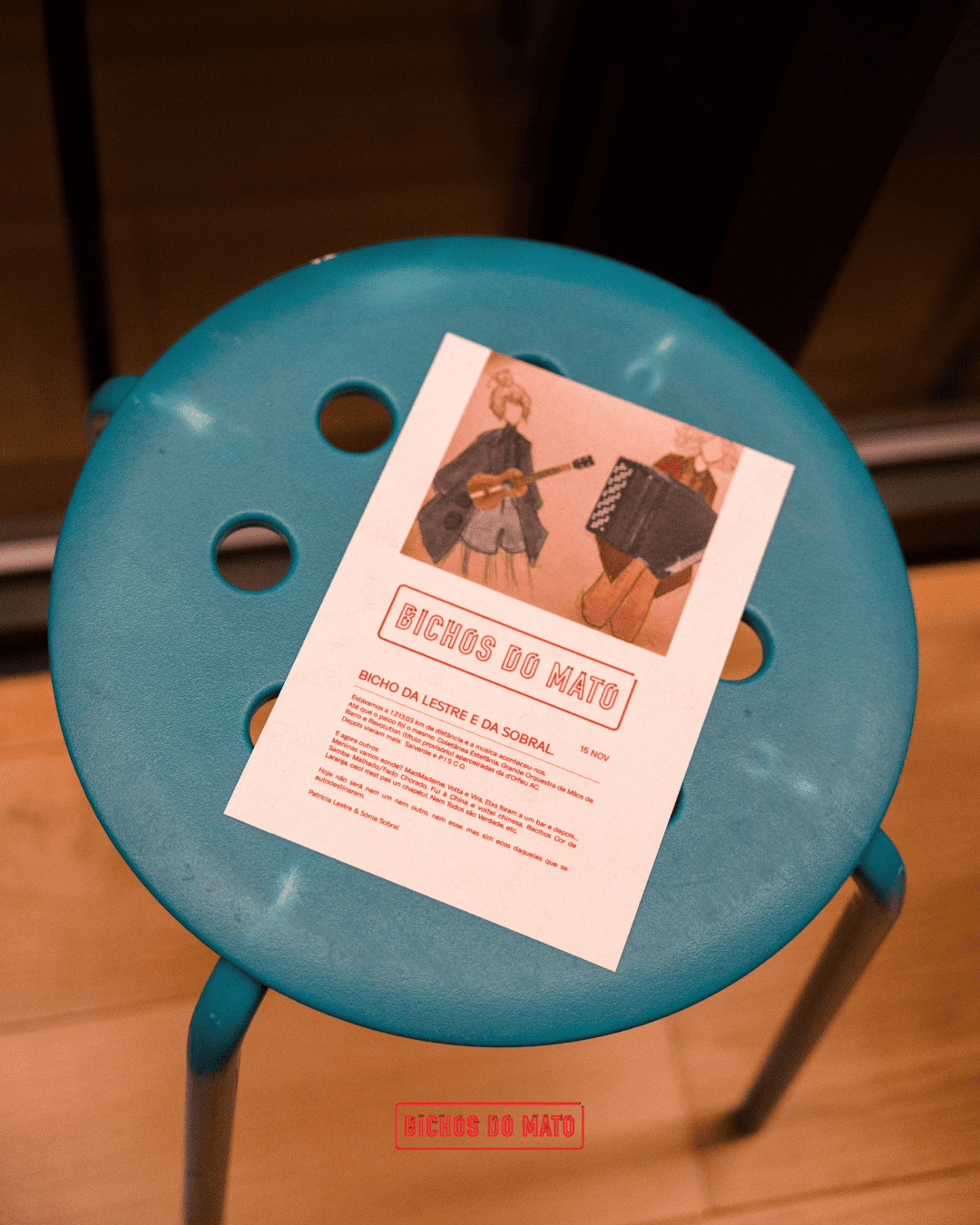A 24ª sessão dos Bichos do Mato, aconteceu no dia 15 de novembro, teve a honra de receber Patrícia Lestre e Sónia Sobral, que ao longo de 90minutos, acompanhadas sempre por diversos instrumentos musicais nos transportaram para um universo delas, e fizeram vibrar os convidados presentes.