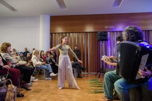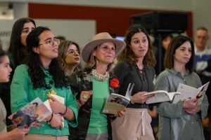 A associação e o CLDS 5G de S. João da Madeira levaram à Peregrinação Poética um coro de 20 participantes, dirigido por Patrícia Lestre e acompanhado por Sónia Sobral no acordeão.