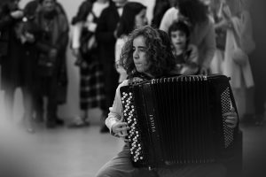 A Patrícia Lestre tornou-nos elásticos: aquilo que à partida era para o palco 1 expandiu-se e guiou todo o caminho da Peregrinação Poética, ao som das vozes e do acordeão.