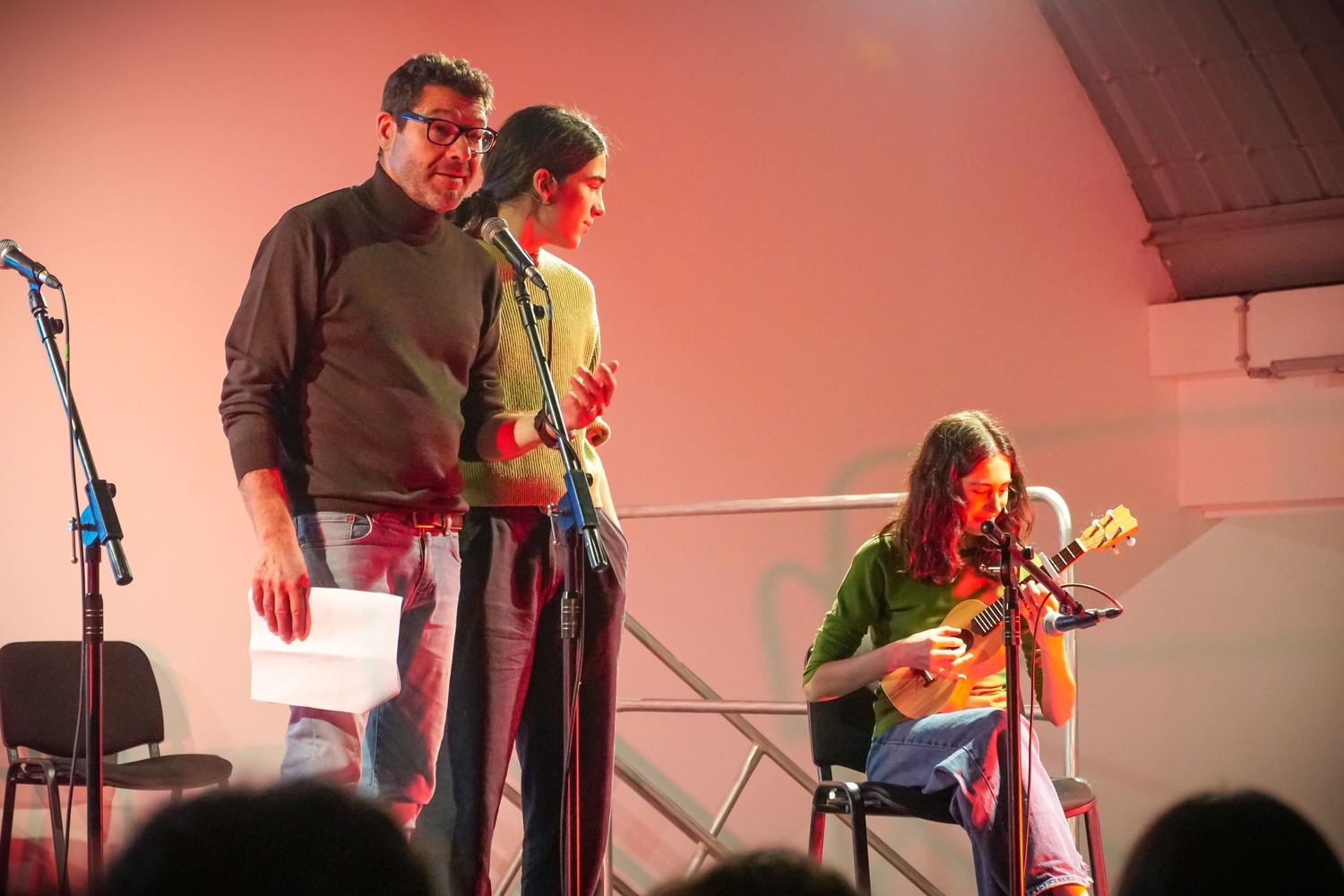 A apresentação e selecção dos poemas contou ainda com o talento e trabalho de três artistas que estão ligados aos Ecos Urbanos desde o início da Oficina de Artistas: Santiago Mateus na encenação e voz, Gabriela Silva, voz e ukulele e a Joana Silva na voz.