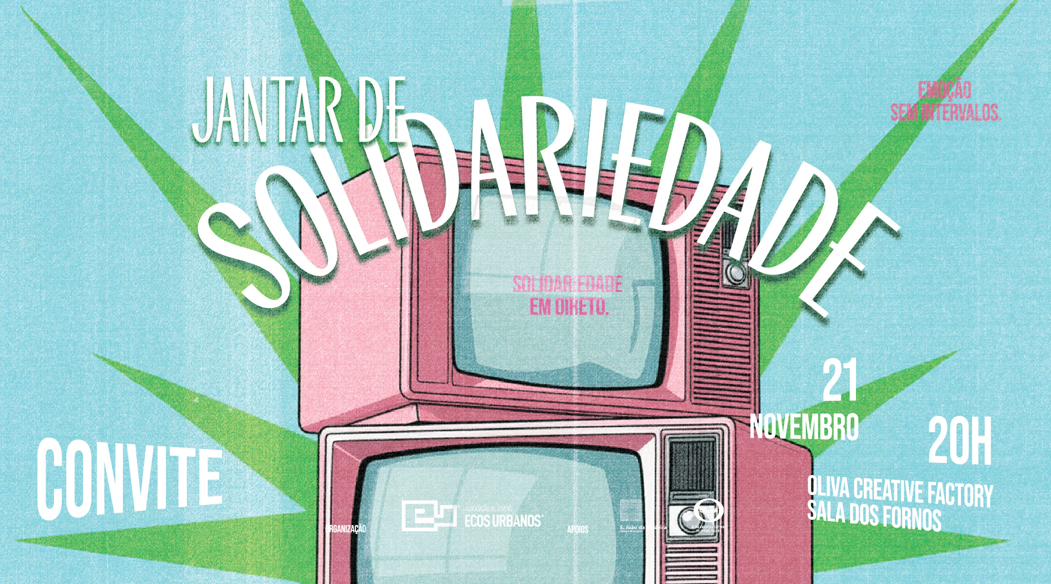 A Associação de Jovens Ecos Urbanos convida toda a comunidade a participar no seu tradicional Jantar de Solidariedade, que este ano decorre no próximo dia 21 de novembro, às 20h, na Sala dos Fornos da Oliva Creative Factory.