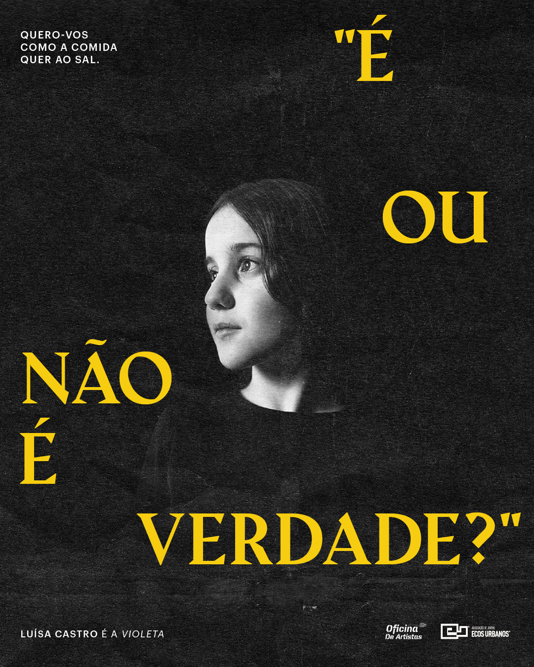 “Quero-vos como a comida quer o sal”, assim definiu a filha o seu amor pela mãe, numa história da tradição popular. É essa história que aqui se conta, adaptada ao teatro. Uma história onde se fala de amor, de ingratidão, e do que acontece quando um dia temos tudo e a seguir já não temos nada.