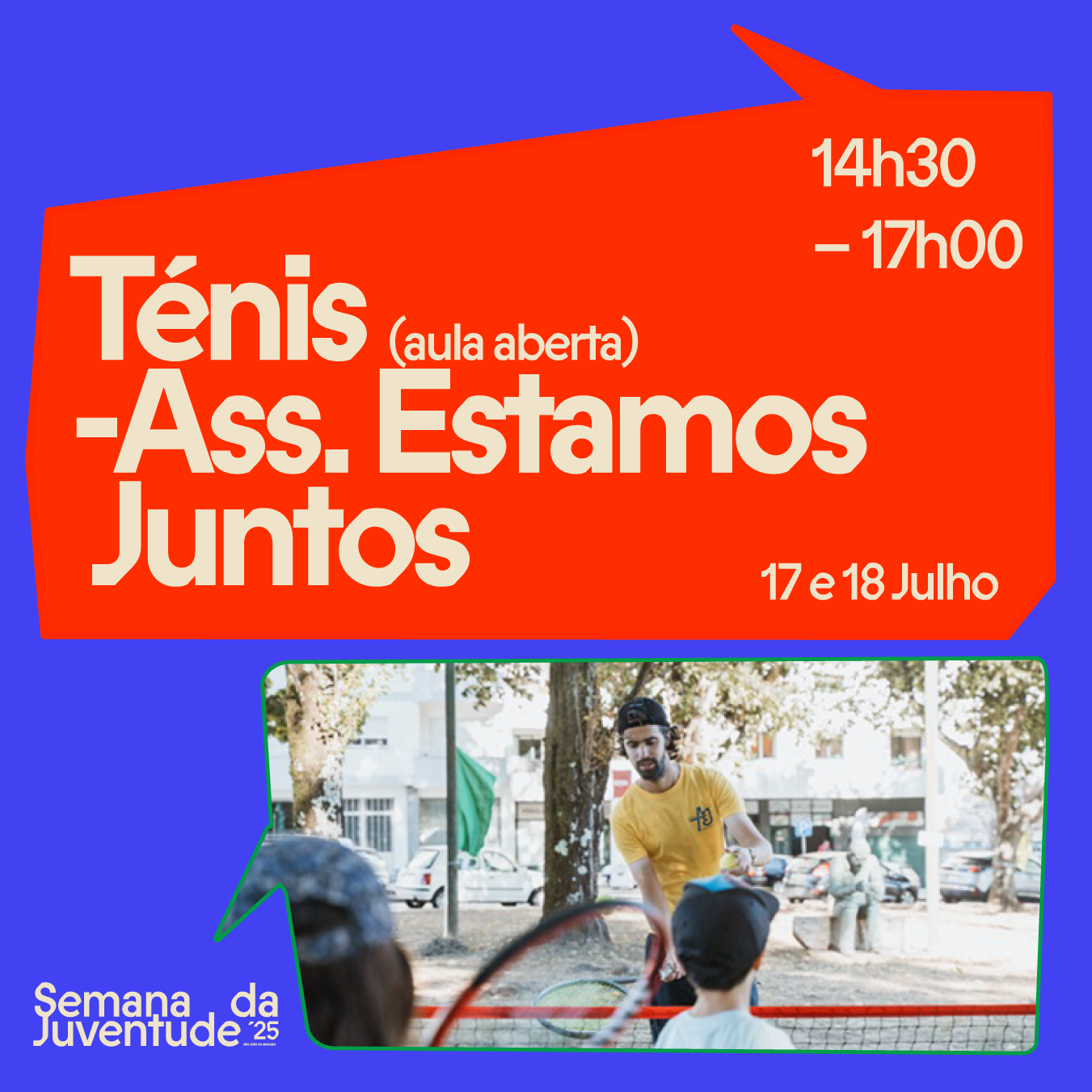 Propomos que venham experimentar a modalidade de ténis, uma aula aberta num campo improvisado em pleno jardim da Semana da Juventude.